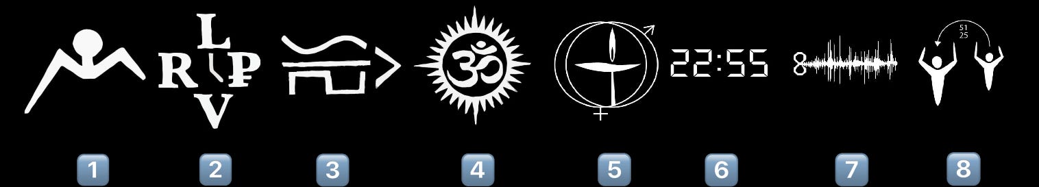 De methode maakt gebruik van acht symbolen die elk een fundamenteel aspect van het leven vertegenwoordigen: